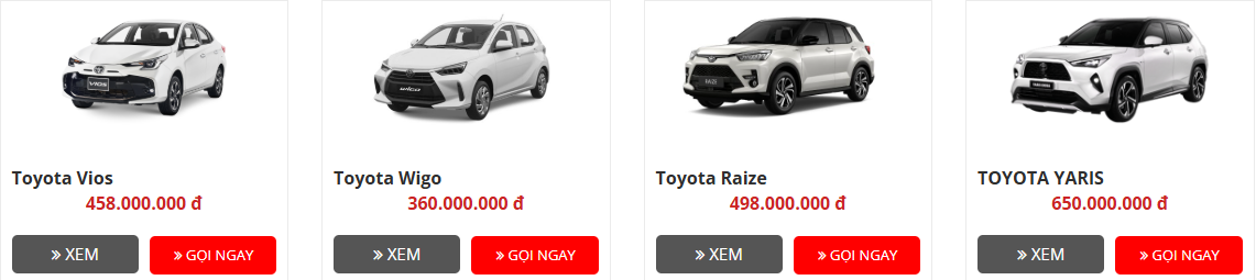 Bảng giá xe TOYOTA THÁI NGUYÊN
